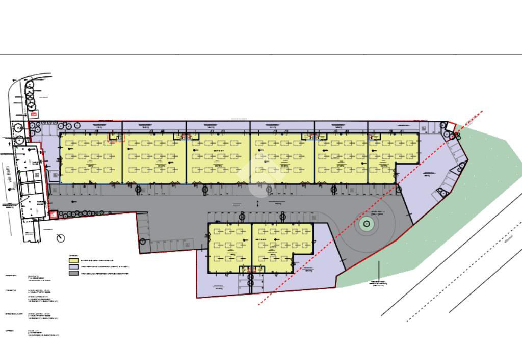 Completa la proprietà un ampia area esterna condominiale comoda per la movimentazione dei mezzi pesanti e ideale per il parcheggio dei mezzi privati in quanto dotata di 76 posti auto.