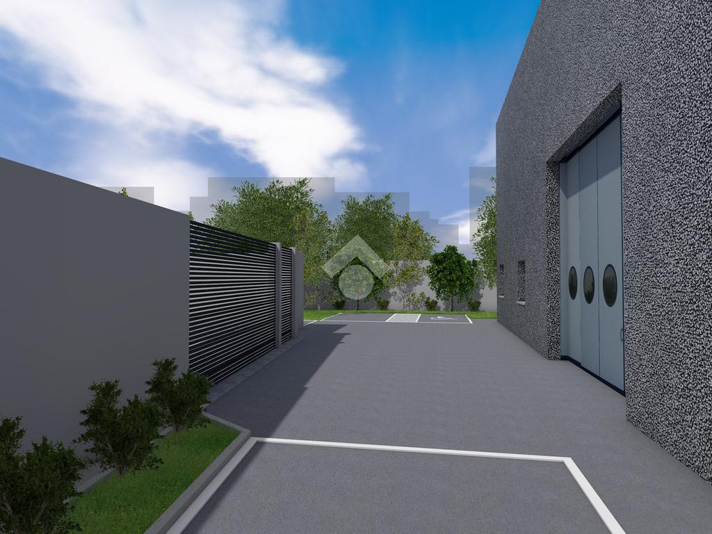 La proprietà fa parte di un complesso dotato di un ampia area esterna comoda per la movimentazione dei mezzi pesanti e ideale per il parcheggio dei mezzi privati in quanto dotata di 76 posti auto.