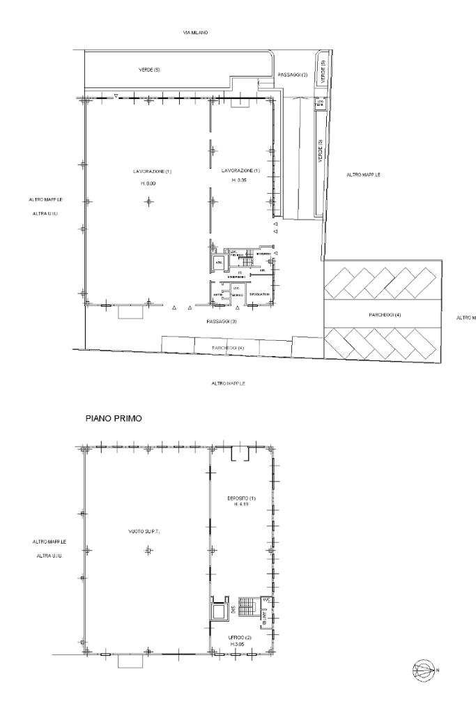 Al piano terra la zona produttiva con altezza utile pari a mt 8,00 e la zona produttiva minore, sopra alla quale si sviluppa il deposito, collegato internamente con un ascensore, accessibile esternamente dalle vetrine su strada.